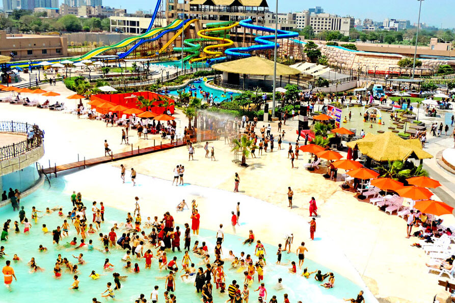 Amusement park with adventure rides, water attractions, and entertainment shows near Delhi.
