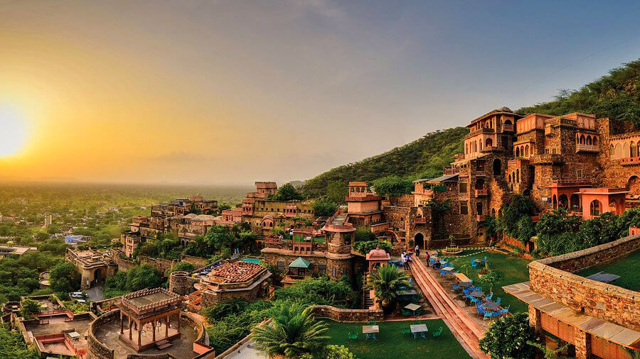 Rural adventure destination offering traditional activities, camel rides, and cultural experiences near Delhi.